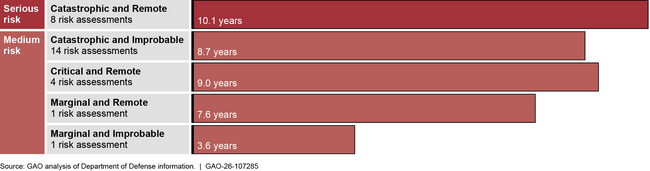 Note: The Department of Defense (DOD) designates risk assessments as serious and medium based on their assessment of the severity (e.g., catatsrophic) and frequency (e.g., remote). The figure does not include six additional risk assessments for general military aviation risks (e.g., bird strikes) that are not specific to the Osprey and have been accepted for the life of the program.