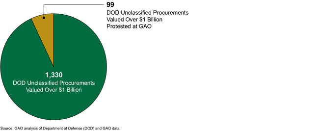 As a further example, during fiscal years 2020 through 2024, DOD conducted 1,330 unclassified procurements (excluding orders) valued at more than $1 billion, of which 99, or approximately 7.44 percent, were protested at GAO.