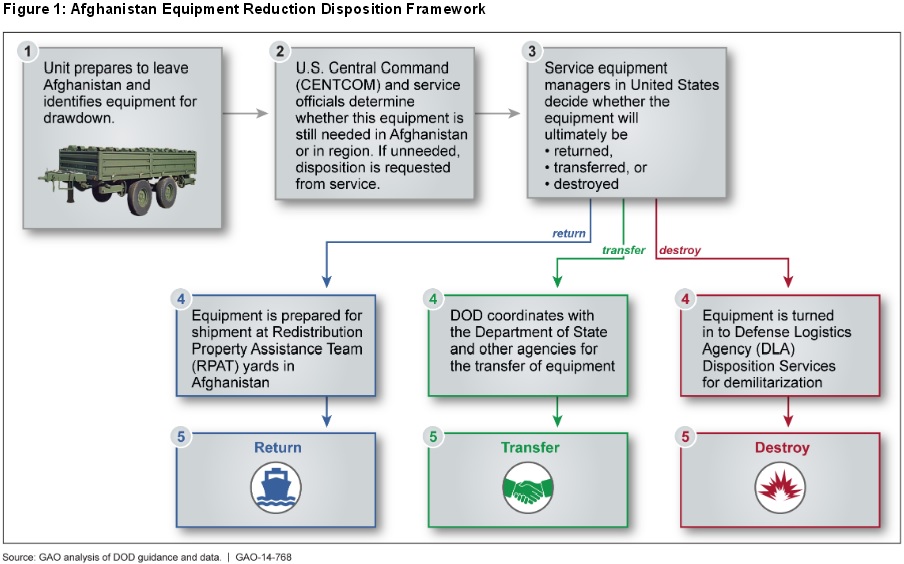 DOD has 3 basic options for disposing of equipment in Afghanistan. Equipment can