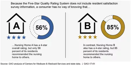 - Care Compare website. CMS’s Care Compare, allows people to research and compare nursing homes and hospices, as well as other types of providers. CMS has worked to improve the transparency and information on the website. For example, CMS added an abuse icon for consumers to more easily identify nursing homes cited with abuse deficiencies. CMS also updated nursing home ownership to include information on facilities with common ownership. However, Care Compare still lacks some key information, such as consumer satisfaction scores and the ability to compare nursing homes across states. Additionally, the nursing home information on Care Compare is not always updated regularly—some of it is more than 2 years old. Further, Care Compare doesn’t have clear, prominent, and easily accessible data on hospices so that consumers can make informed choices.