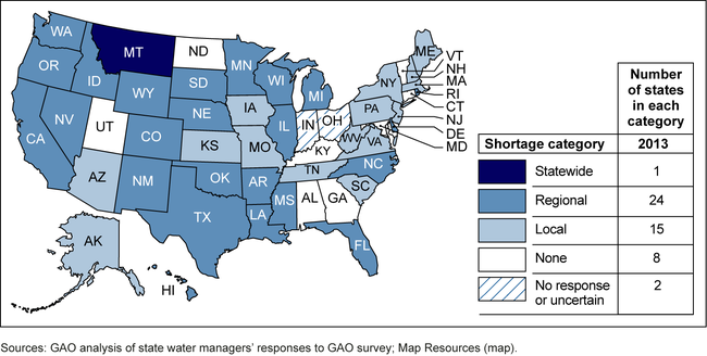Extent of State Shortages Likely over the Next Decade under Average Water Conditions, 2013