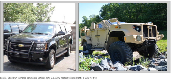Armored Commercial Passenger-Carrying Vehicle (left) Compared to Military Tactical Vehicle (right)