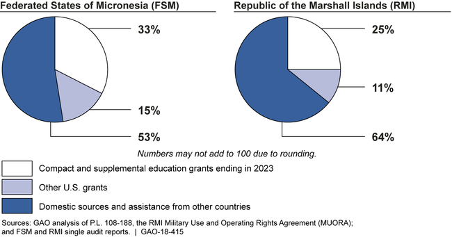 The Federated States of Micronesia (FSM) and the Republic of the Marshall Islands (RMI) continue to rely on U.S. grants and programs, including several that are scheduled to end in 2023. U.S. compact sector and supplemental education grants, both scheduled to end in 2023, support a third of the FSM's and a quarter of the RMI's expenditures. Agreements providing U.S. aviation, disaster relief, postal, weather, and other programs and services are scheduled to end in 2024, but some agencies may provide programs and services similar to those in the agreements under other authorities. FSM and RMI eligibility for some other U.S. grants and programs is expected to continue after 2023.