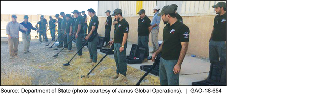 The Departments of State (State) and Defense (DOD), the U.S. Agency for International Development (USAID), and the U.S. Institute of Peace (USIP)—an independent, federally funded institute—reported conducting various efforts to address conflict prevention, mitigation, and stabilization for Iraq, Nigeria, and Syria in fiscal year 2017. For example, in Iraq, State supported efforts to remove improvised explosive devices from homes and infrastructure (see figure); USAID contributed to the United Nations to restore essential services; DOD provided immediate medical trauma supplies to the World Health Organization to treat injured civilians; and USIP conducted facilitated dialogs to enable local reconciliation in areas liberated from the Islamic State of Iraq and the Levant.