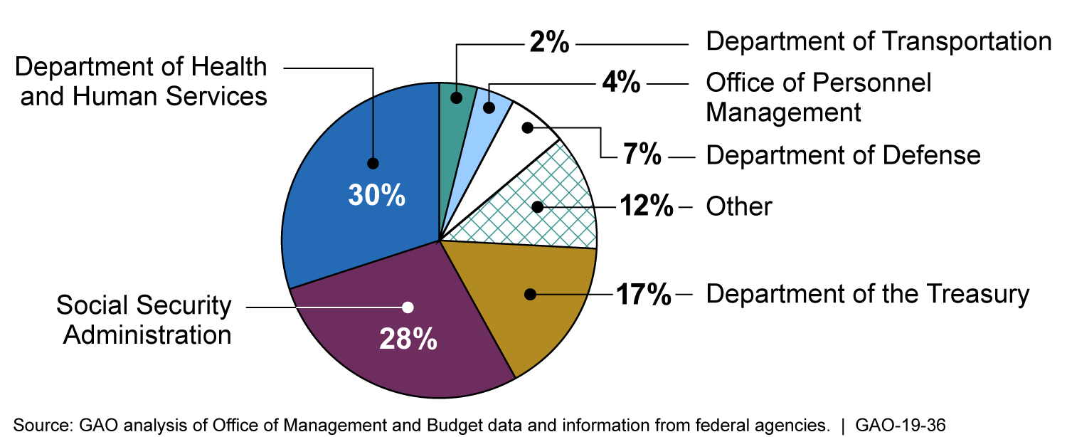 Three agencies comprised three quarters of the total government-wide spending authority and permanent appropriations in fiscal year 2015.