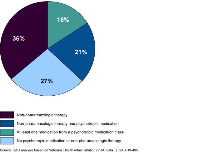 In fiscal year 2018, of the roughly 6 million veterans who received services from VHA, approximately 2 million had a diagnosis for at least one mental health condition. Treatments for such mental health conditions can include psychotropic medications or non-pharmacologic therapies, which can be prescribed or offered by VA providers in outpatient settings including primary and specialty care.