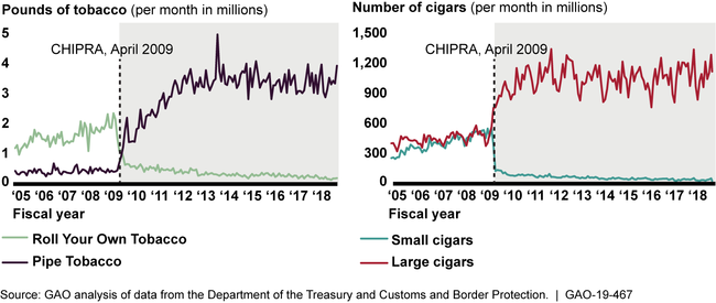 In 2009, CHIPRA increased and equalized federal excise tax rates for cigarettes, roll-your-own tobacco, and small cigars but did not equalize tax rates for pipe tobacco and large cigars—products that can be cigarette substitutes. GAO reported in 2012 and 2014 on the estimated federal revenue losses due to the market shifts from roll-your-own to pipe tobacco and from small to large cigars.