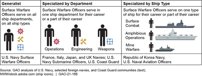 The career path for U.S. Navy SWOs differs from those in similar positions in selected foreign navies and other U.S. Navy and U.S. maritime communities.