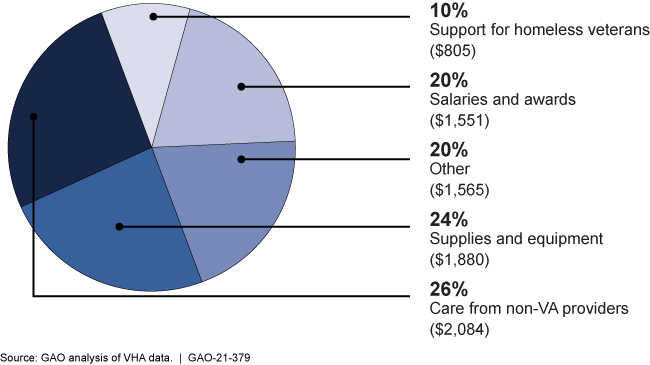 Our analysis shows that through March 2021, VA had committed to spending $9.9 billion and spent $8.1 billion of this funding. Much of the committed funding went to veterans' health care from non-VA providers, additional salary costs (such as for overtime), and to help homeless veterans.