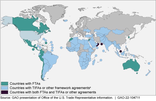 Countries with Free Trade Agreements or Trade and Investment Framework Agreements with the United States, as of September 2021