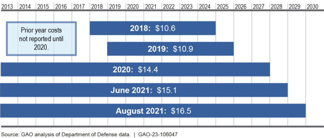 F-35 Block 4 Modernization Cost Increases since 2018 (then-year dollars in billions)