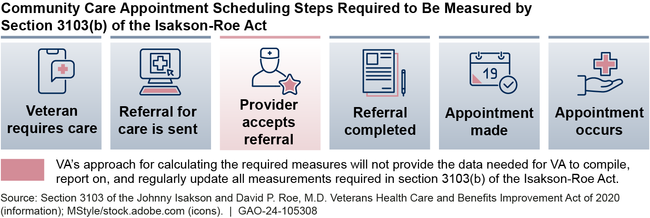 GAO and others have previously identified challenges VA has had in scheduling community care appointments in a timely manner. The Isakson-Roe Act included requirements for VA related to administering community care and to measuring appointment scheduling timeliness, from the date the veteran requires care to the date the community care appointment occurs. It also includes a provision for GAO to review VA's compliance with section 3103 of the act.