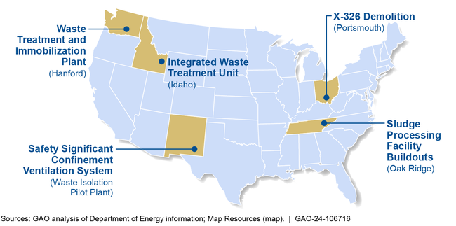 The Department of Energy is responsible for treating and disposing of waste from nuclear weapons production and energy research. Its projects for building treatment facilities and demolishing old buildings have often been over budget and delayed.