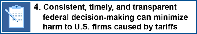 - Tariffs that protect U.S. industries from certain PRC trade practices have exclusions to mitigate potential harm to U.S. companies and workers.