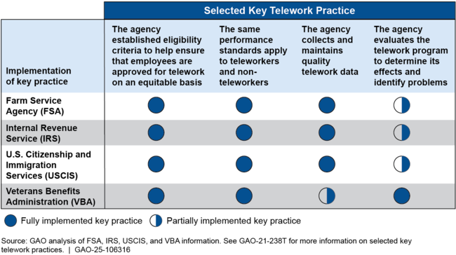 As shown in the figure, agencies fully or partially met four selected key practices for a successful telework program.